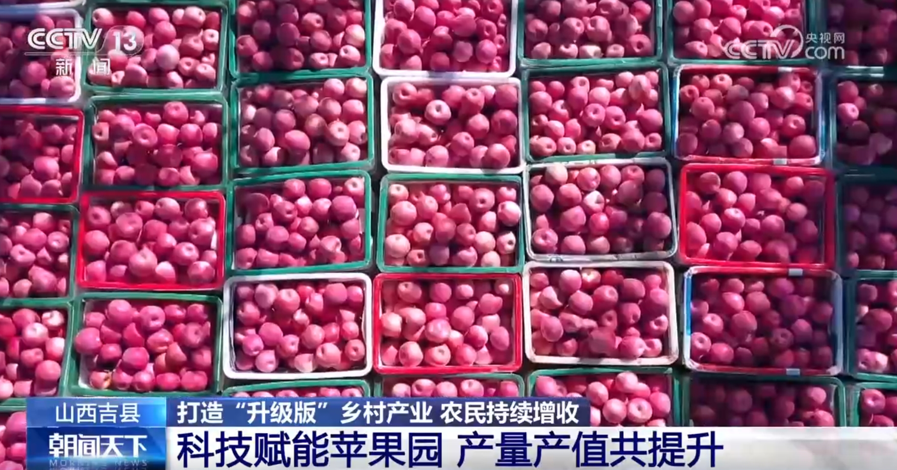 在山西吉縣,蘋果專業(yè)村占到了當(dāng)?shù)匦姓蹇倲?shù)的80%以上,為了讓蘋果產(chǎn)業(yè)做強(qiáng),當(dāng)?shù)匾钥萍假x能蘋果園,通過大數(shù)據(jù)、云計算進(jìn)行智能灌溉、精準(zhǔn)施肥,同時運(yùn)用矮化密植栽培技術(shù)實(shí)現(xiàn)了蘋果產(chǎn)量和產(chǎn)值的提升,這項技術(shù)已經(jīng)運(yùn)用在全縣5000畝蘋果地。