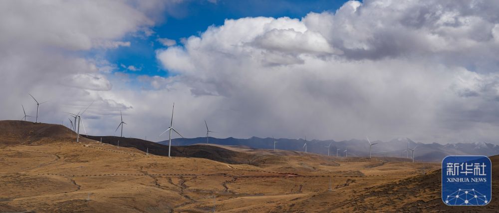 10月17日拍攝的位于西藏日喀則市薩迦縣的風力發電機組。