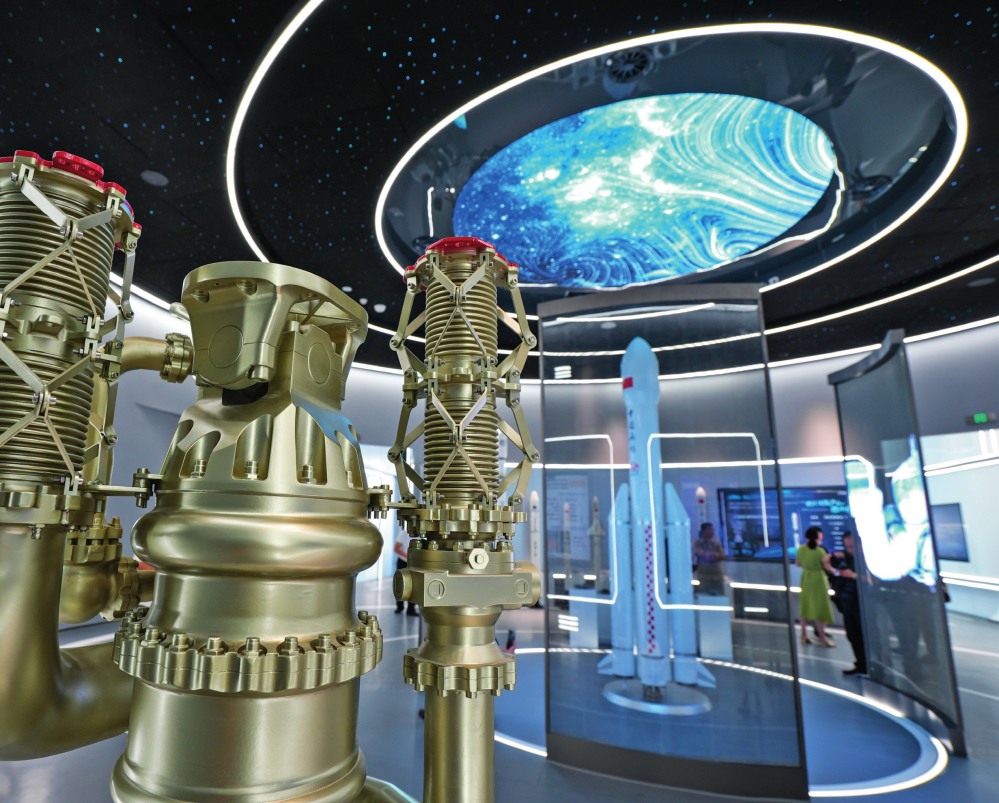 在無錫商業航天展示館拍攝的火箭發動機模型(2024 年 9 月 9 日攝) 楊磊攝 / 本刊