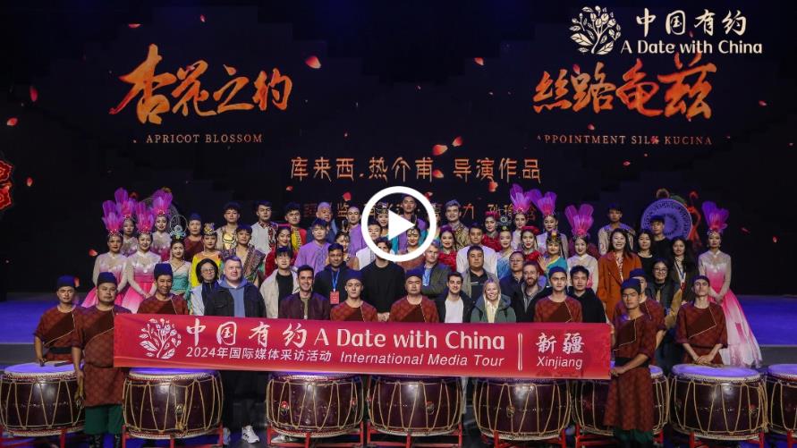 10月22日,“中國(guó)有約·相約新疆”2024年國(guó)際媒體采訪團(tuán)走進(jìn)庫(kù)車大馕城。2023年大馕城中廳進(jìn)行升級(jí)改造,修建了大型演藝舞臺(tái),打造一臺(tái)以古代龜茲樂舞和當(dāng)下庫(kù)車非遺相融合的樂舞詩(shī)劇目。國(guó)際媒體采訪團(tuán)成員在欣賞了精彩的表演之后,走上舞臺(tái)與演員們一起上演最炫民族風(fēng),感受著千年古城人民的熱情與友好。