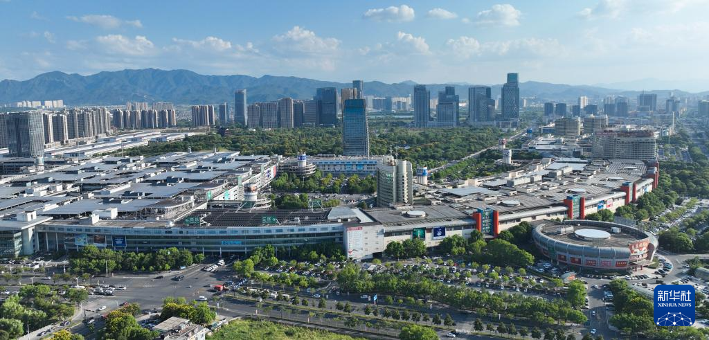 鳥瞰義烏國際商貿城(無人機照片,9月6日攝)。新華社發(何錦程攝)