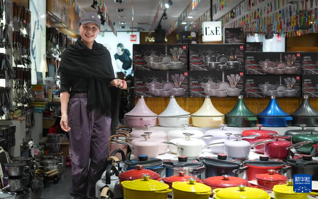 義烏創藝廚具創始人劉萍娟在她的廚具店里(10月9日攝)。新華社記者 翁忻旸 攝