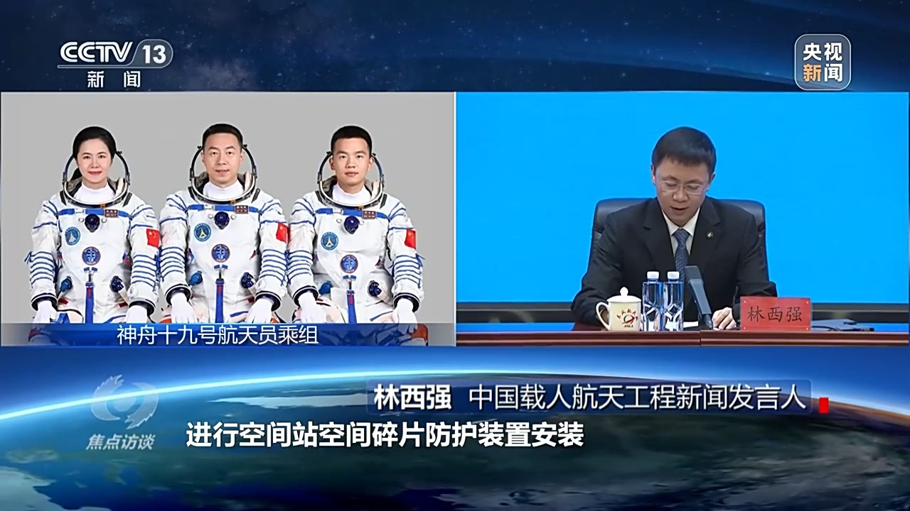 中國載人航天工程新聞發言人 林西強:此次任務在空間站駐留約六個月,開展空間科學與應用實(試)驗,實施航天員出艙活動及貨物進出艙,進行空間站空間碎片防護裝置安裝,艙外載荷和艙外設備安裝與回收等任務,開展科普教育和公益活動以及空間搭載試驗。
