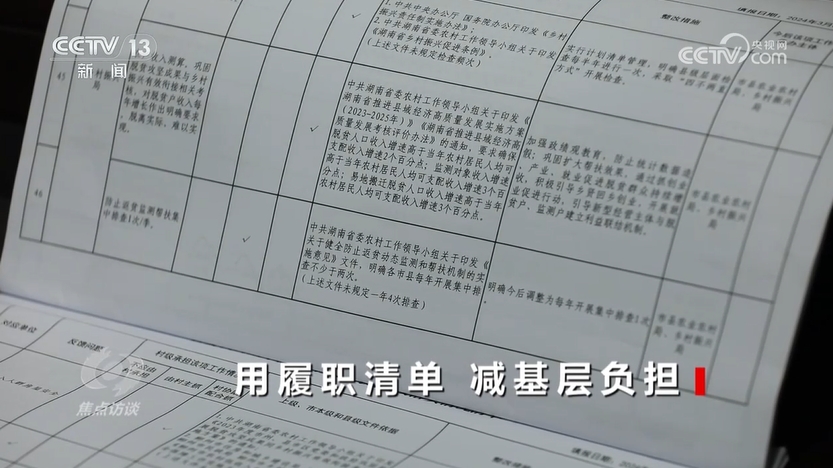 央視網消息(焦點訪談):“上面千條線,底下一根針”,人們經常用這句話來描述鄉鎮干部的基層工作狀況。也有人用“小馬拉大車”形象地描述基層干部在實際工作中所面臨的滿負荷狀態。為了減輕基層負擔,2024年8月,中共中央辦公廳、國務院辦公廳印發《整治形式主義為基層減負若干規定》,其中明確提出,要規范明晰基層權責,建立健全職責清單。那么,目前基層權責明晰做得如何呢?
