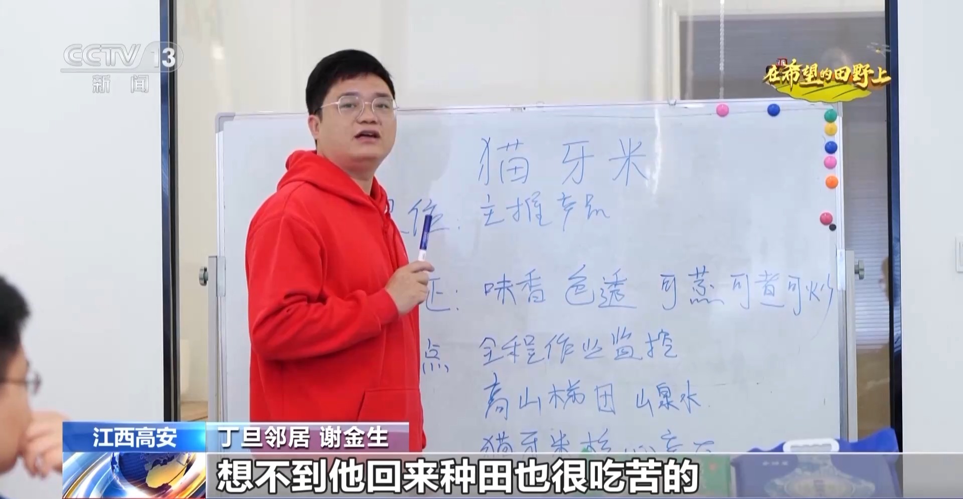 這段時間,正是晚稻收割的時節,江西宜春高安市的90后新農人丁旦一直在田間地頭忙碌,除了收晚稻,他還請來專家幫忙觀察新品種的試種情況。