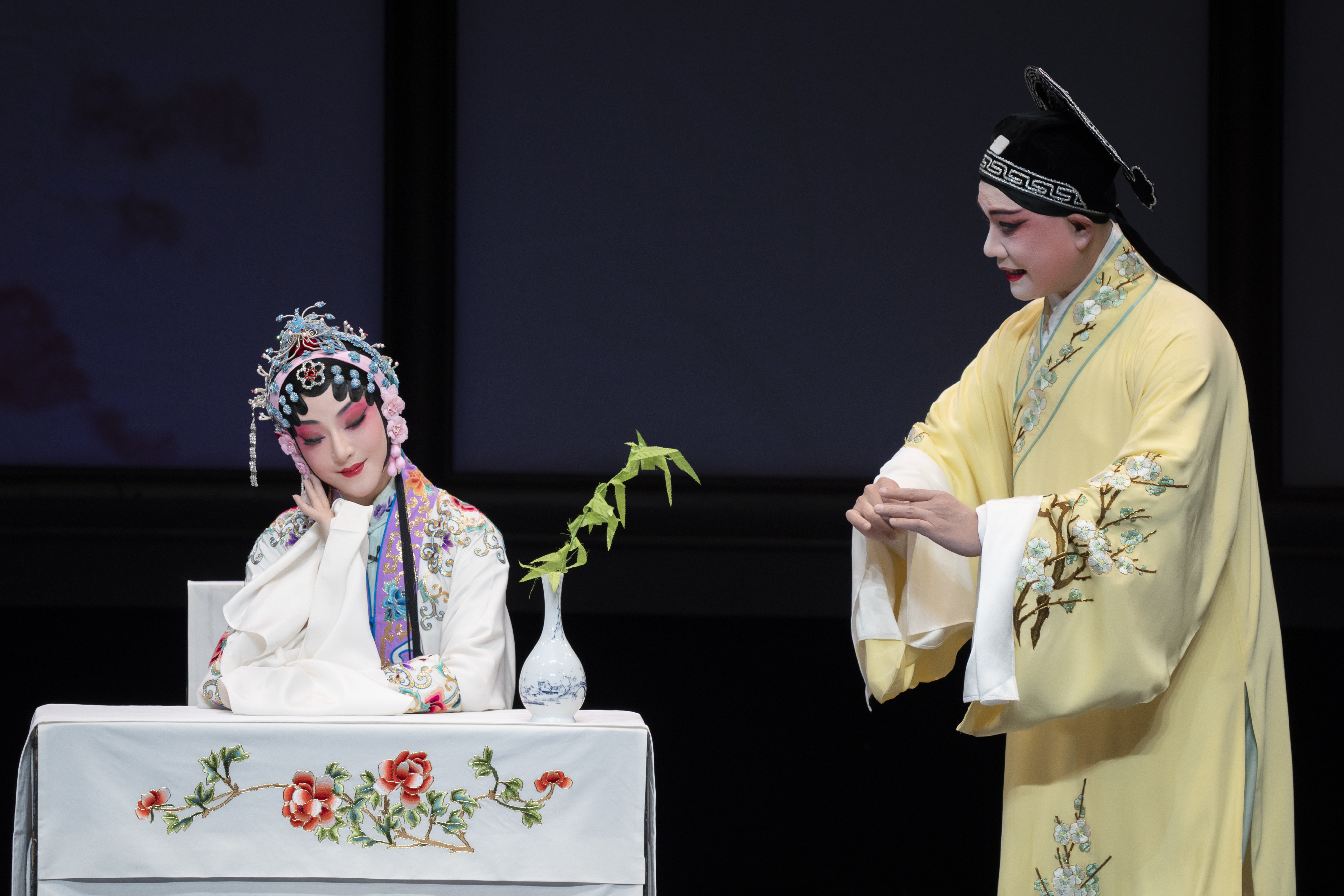 一桌一椅的極簡舞臺,為什么卻能在觀眾心中撐出一個內涵極為豐富的文化空間?《牡丹亭》以其文辭典雅、語言秀麗著稱,被譽為“花中之后”,不僅是中國古典戲曲中的瑰寶,更是中國戲劇文學發展史上的重要里程碑。“我15年前第一次聽昆曲時,覺得節奏很慢,難以適應。如今再次觀看《牡丹亭》,盡管生活節奏加快了許多,我卻能更加從容地融入其中,深刻體驗到中華傳統文化之美。”觀眾于女士感嘆,不止于戲文,《牡丹亭》的聲腔、表演、舞臺,每一個元素都承載著深厚的文化價值,讓人在中國式審美中共鳴于人物的精神追求。
