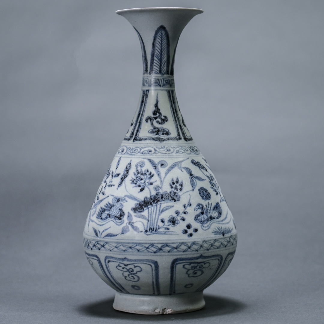 △元青花蓮池鴛鴦紋玉壺春瓶 中國(海南)南海博物館藏。