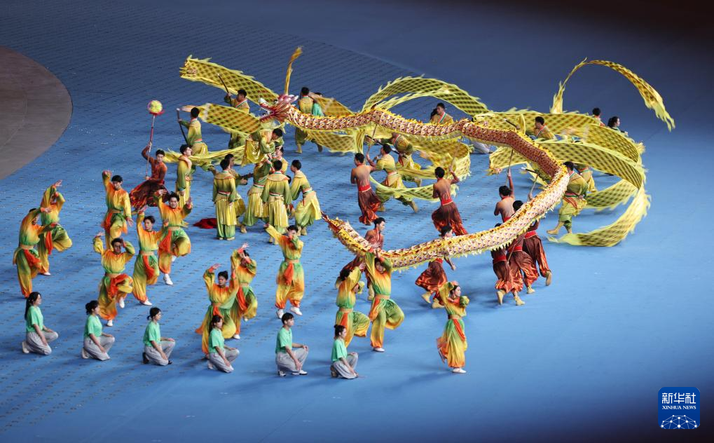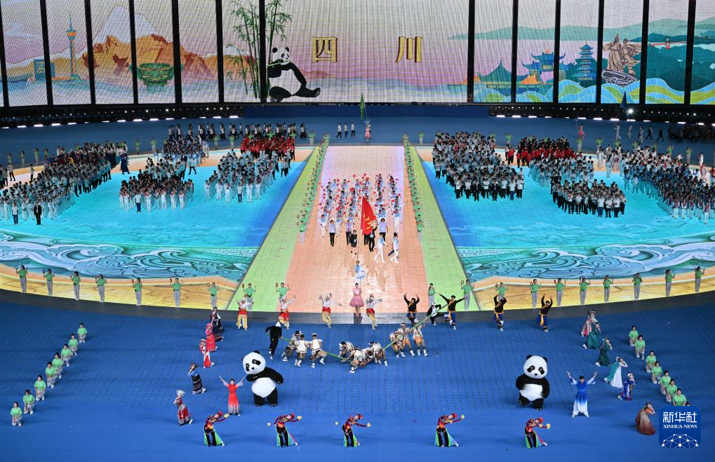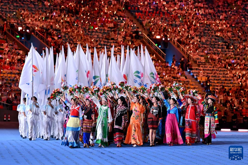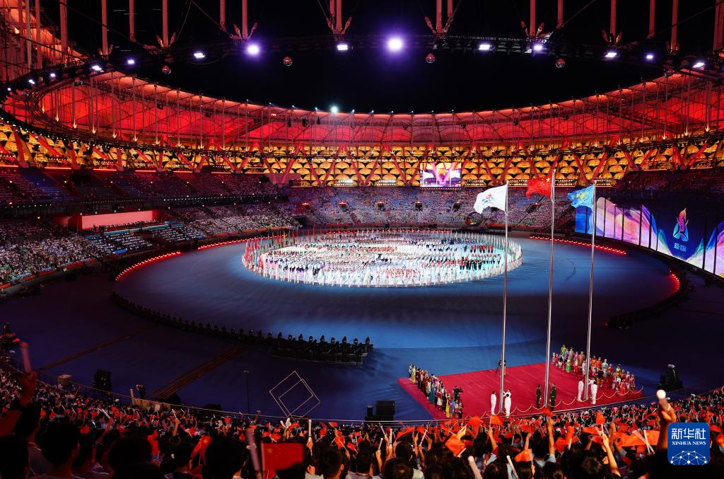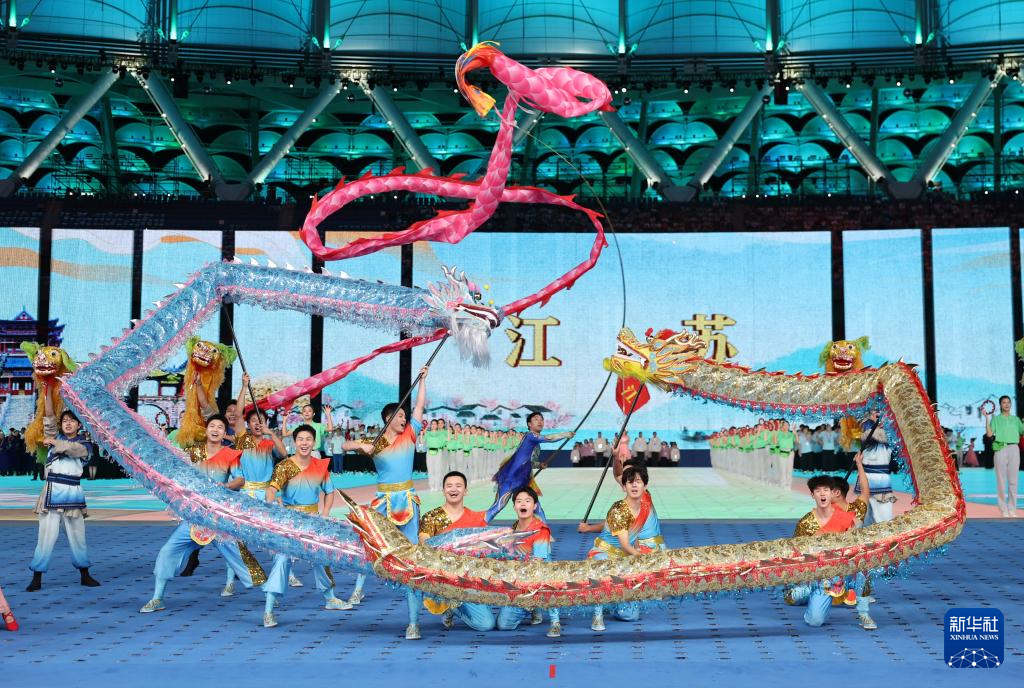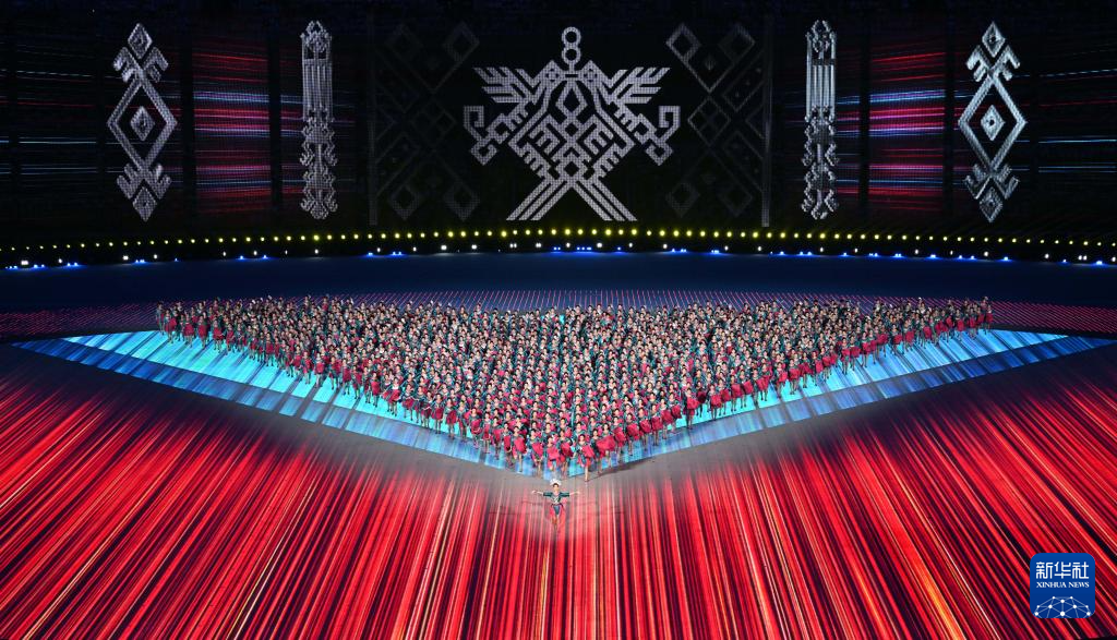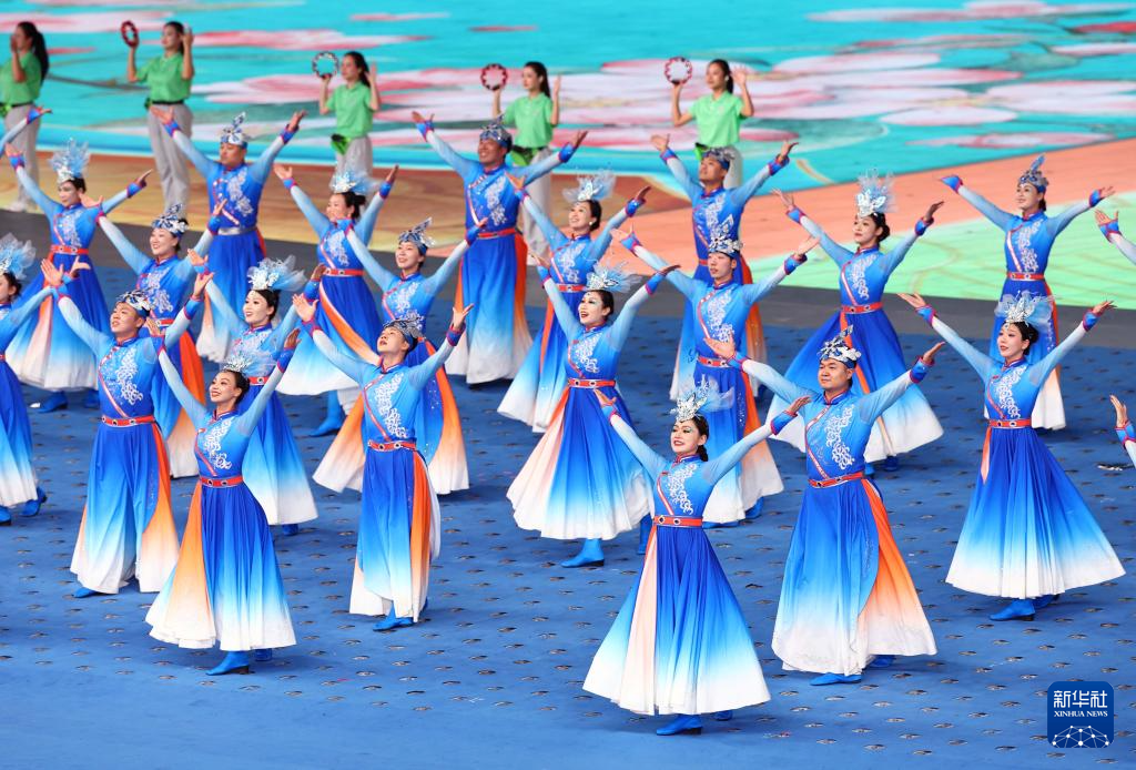 11月22日,開幕式現場升起中華人民共和國國旗、中華人民共和國少數民族傳統體育運動會會旗和中華人民共和國第十二屆少數民族傳統體育運動會會旗。