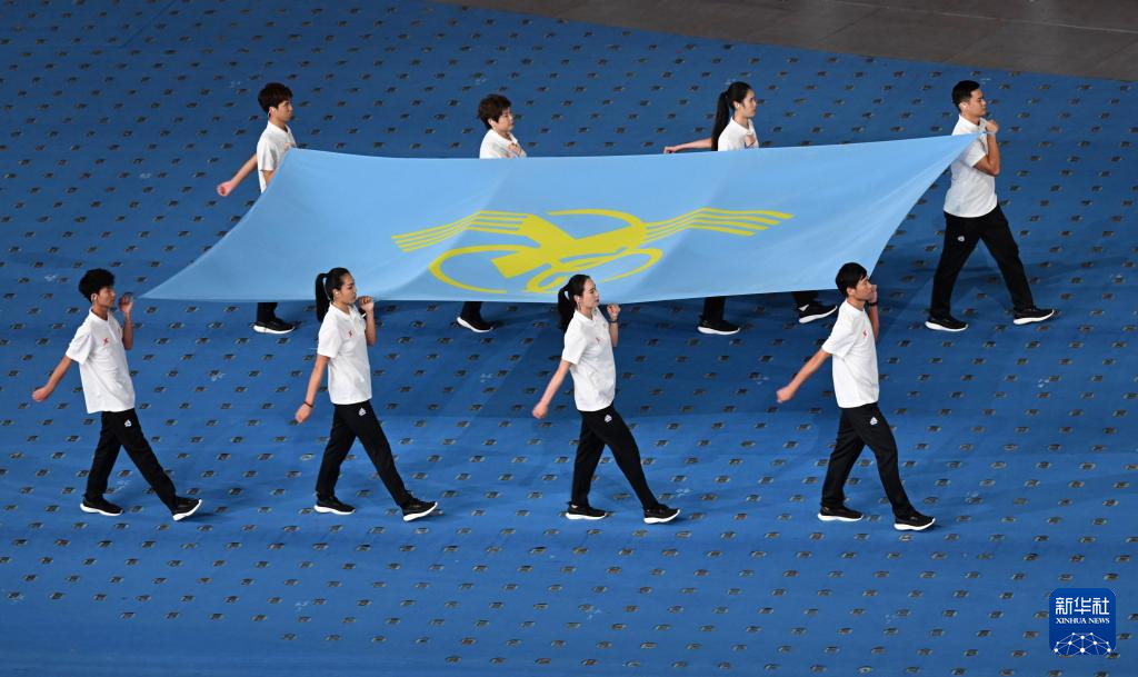 11月22日,中華人民共和國第十二屆少數民族傳統體育運動會會旗方隊在開幕式上入場。
