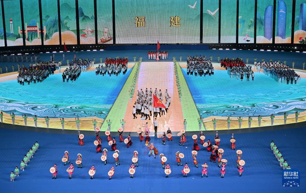 11月22日,廣西壯族自治區代表團在開幕式上入場。