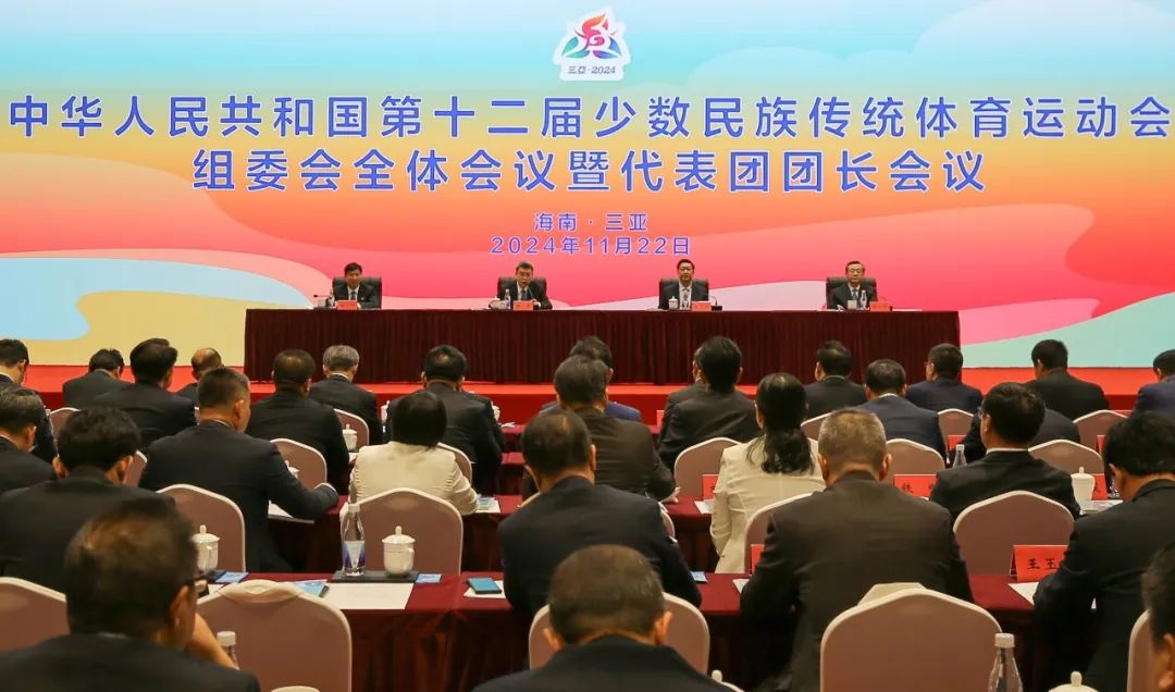 11月22日下午,第十二屆全國少數(shù)民族傳統(tǒng)體育運(yùn)動會組委會全體會議暨代表團(tuán)團(tuán)長會議在海南三亞召開。民族畫報社 盧旭 譚宇杰 攝