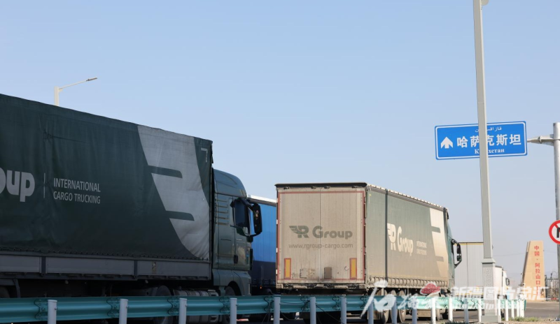 阿拉山口公路口岸,貨車完成查驗正排隊出境。文亞輝攝