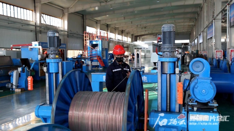 新疆新東風電纜有限公司生產車間內,工人正在忙碌加工產品。布仁巴特攝