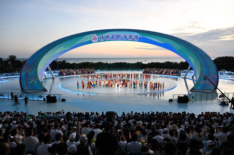 聯歡會環節,大家在海邊落日余暉下觀看了一場民族風韻集萃性質的文藝演出,恰好呼應了“天涯共此時”的主題。