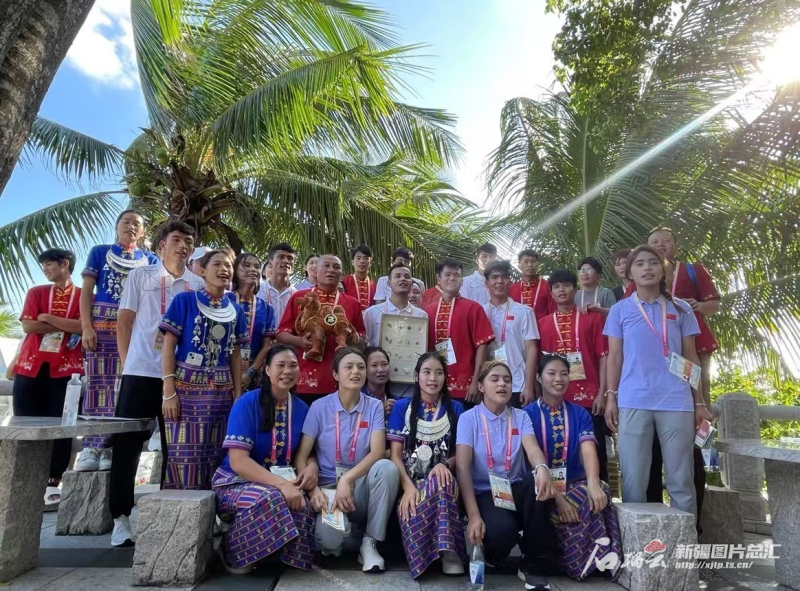 保亭黎族苗族自治縣歌舞團的姑娘們還帶著新疆代表團成員體驗竹竿舞。“我們從接到任務到現在已準備了一年多,看到各民族交往交流交融的畫面感到很高興。”黎族姑娘王桃雀說。