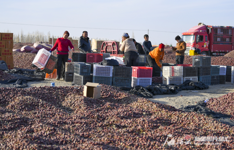 11月29日,策勒縣農民在晾曬場搬運紅棗。