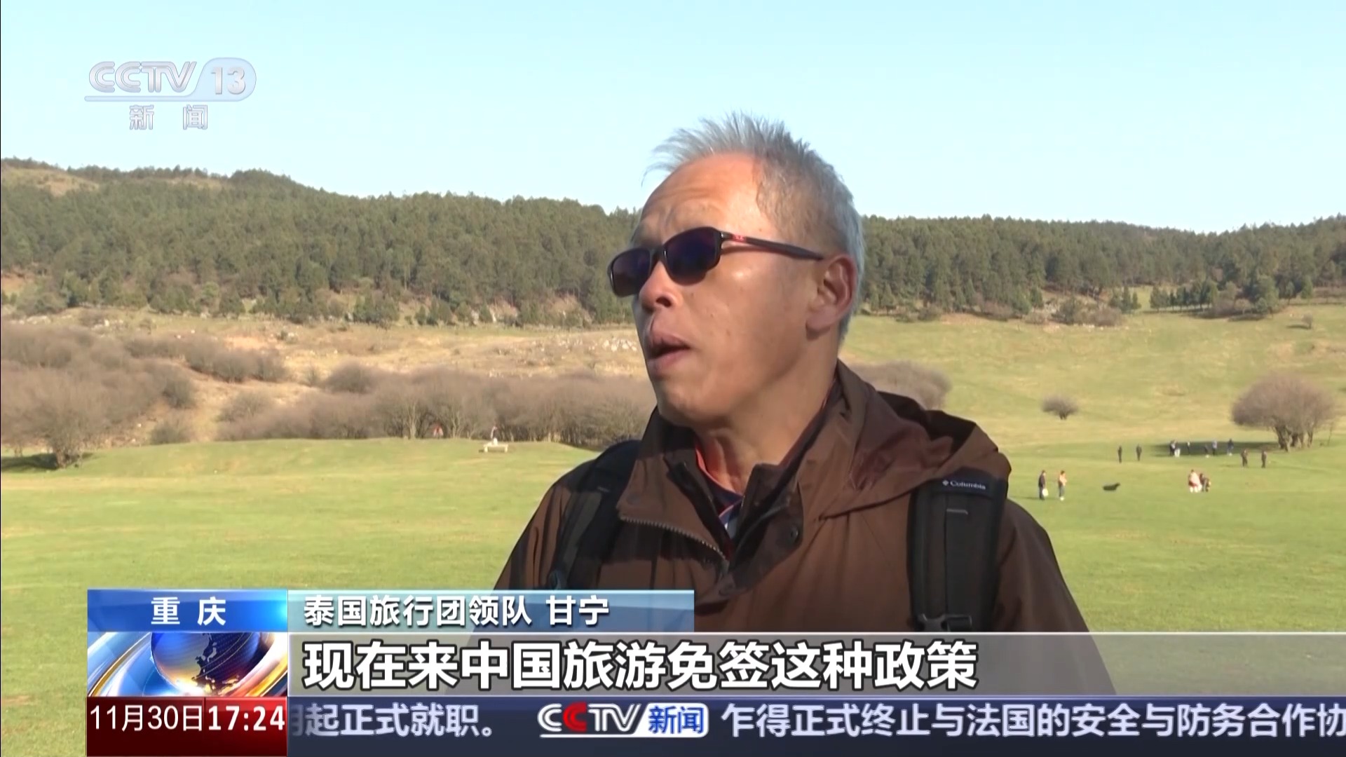 在重慶的著名旅游勝地武隆,各大景區(qū)接待的海外游客數(shù)量明顯增加,這些游客大多來(lái)自泰國(guó)、新加坡、馬來(lái)西亞等國(guó)家。29日一大早,重慶武隆仙女山景區(qū)就迎來(lái)了來(lái)自泰國(guó)的旅行團(tuán)。雖已入冬,仙女山仍然陽(yáng)光明媚,滿目青翠,遠(yuǎn)道而來(lái)的游客或欣賞青山綠水,或與草原上的山羊合影,享受愜意時(shí)光。