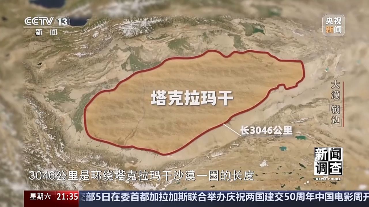 2023年6月,習(xí)近平總書記在內(nèi)蒙古巴彥淖爾市主持召開加強(qiáng)荒漠化綜合防治和推進(jìn)“三北”等重點(diǎn)生態(tài)工程建設(shè)座談會(huì),強(qiáng)調(diào)要打好河西走廊——塔克拉瑪干沙漠邊緣阻擊戰(zhàn)等三大戰(zhàn)役。3046公里,是環(huán)繞塔克拉瑪干沙漠一圈的長度。過去40多年,依托“三北”防護(hù)林體系工程建設(shè),塔克拉瑪干沙漠周邊已形成長達(dá)2761公里的綠色阻沙防護(hù)帶。截至2023年底,還剩285公里的空白區(qū)。塔克拉瑪干沙漠邊緣阻擊戰(zhàn)的首要任務(wù),就是要補(bǔ)齊缺口,給沙漠“鎖邊”。