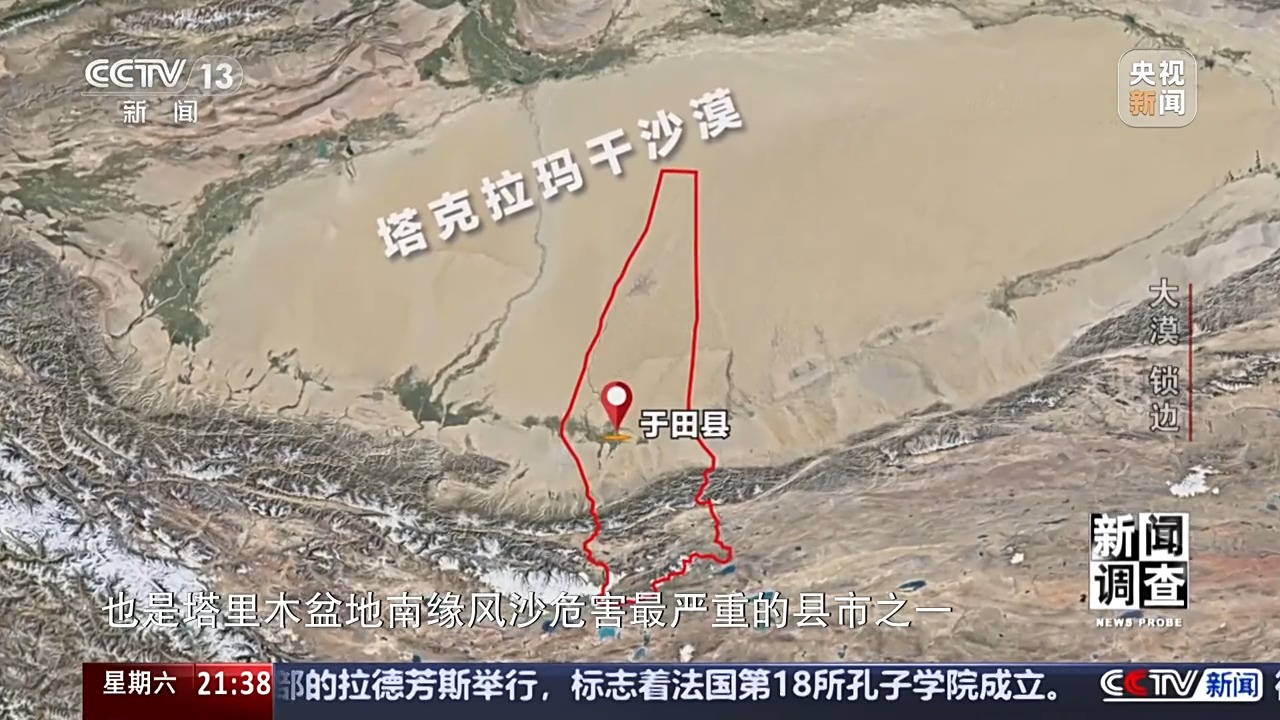 中國科學(xué)院新疆生態(tài)與地理研究所荒漠與綠洲生態(tài)國家重點(diǎn)實(shí)驗(yàn)室主任 陳亞寧:和田地區(qū)大概就是256萬人,由于人均耕地面積少,經(jīng)濟(jì)發(fā)展相對(duì)也滯后。也是脫貧攻堅(jiān)成果鞏固和拓展難度最大的一個(gè)區(qū)域,所以在打好塔克拉瑪干沙漠邊緣阻擊戰(zhàn),對(duì)和田地區(qū)的經(jīng)濟(jì)社會(huì)發(fā)展、農(nóng)民增收是有著重要意義的。我們帶著隊(duì)伍進(jìn)行了將近兩個(gè)多月的實(shí)體調(diào)研,那我們調(diào)查什么呢?第一這里的地理環(huán)境、自然生態(tài)條件、水資源情況,同時(shí)我們也收集到他們當(dāng)?shù)剡@么多年防沙治沙的一些成功經(jīng)驗(yàn)和教訓(xùn),我們也進(jìn)行了訪談,結(jié)果我們就提出了一種從不同生態(tài)條件、不同沙害和不同水源條件下如何防沙治沙,實(shí)現(xiàn)沙漠鎖邊等一些建議、措施和總體規(guī)劃。