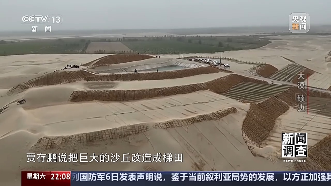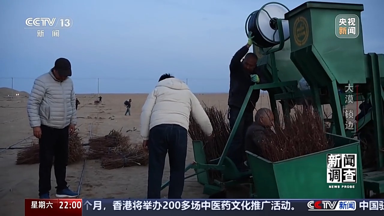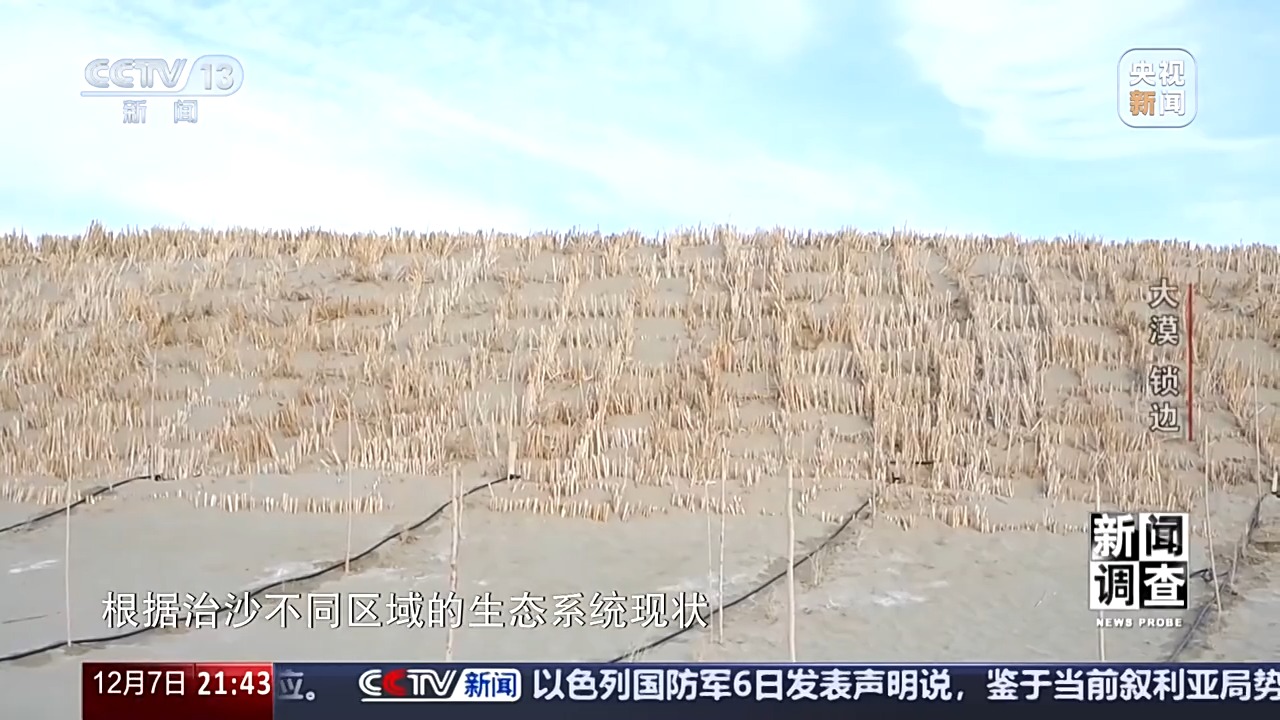 新疆于田縣林業(yè)和草原局黨組書記、副局長 賈存鵬:首先我們要到實(shí)地去勘測,只要能有水的,我們?nèi)渴巧镏紊?,沒水的地方是草方格和高立式沙障治沙。