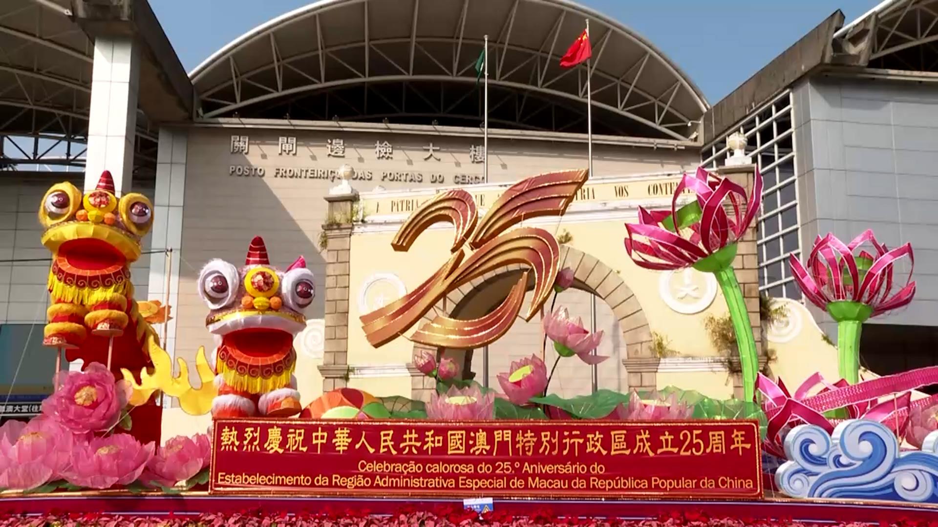 鮮艷的五星紅旗和澳門特區區旗迎風飄揚