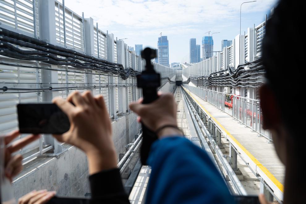 乘客乘坐澳門輕軌首班車前往橫琴站(2024年12月2日攝)。新華社發(fā) (張金加攝)