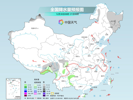 明天,新疆北疆北部和南疆西部山區(qū)、內(nèi)蒙古東北部、東北地區(qū)東部、西藏東部、川西高原北部等地部分地區(qū)有小雪或雨夾雪,局地有中到大雪。西藏東南部、四川盆地西南部、貴州中西部、云南東部、臺(tái)灣島東部等地部分地區(qū)有小雨。