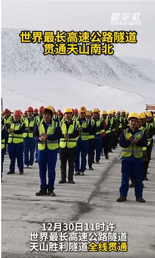 30日,天山深處傳來歡呼聲,世界最長高速公路隧道——天山勝利隧道全線貫通。打通這條長達22.13公里“咽喉”隧道,連接烏魯木齊與天山南側尉犁縣的烏尉高速通車在望。