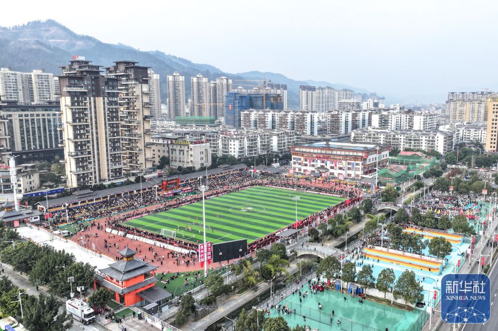 ↑這是1月4日拍攝的“村超”揭幕戰(zhàn)現(xiàn)場(無人機照片)。