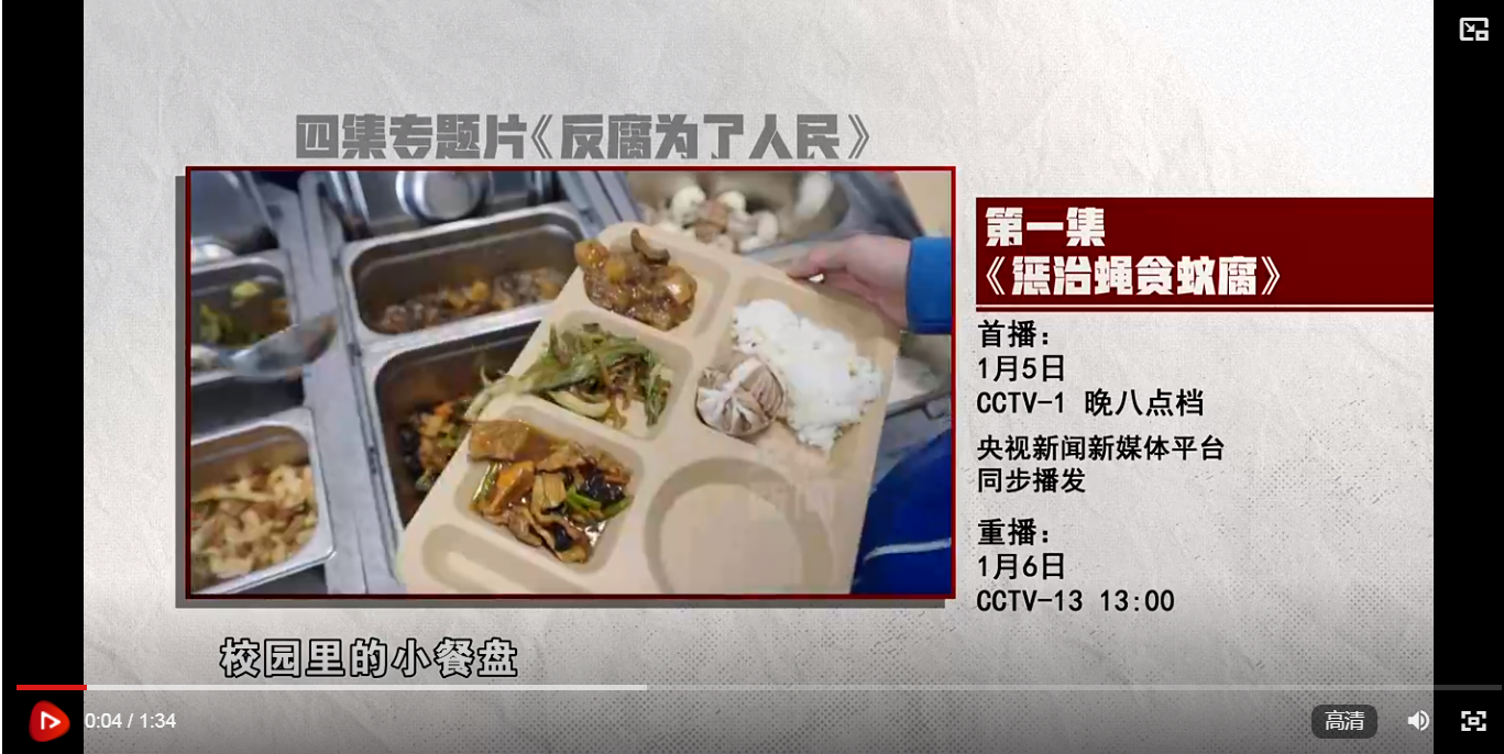 【解說詞】校園里的小餐盤,無疑是家長心中的大民生。紀檢監察機關回應群眾關切,強力整治校園餐管理問題,守護校園餐安全。