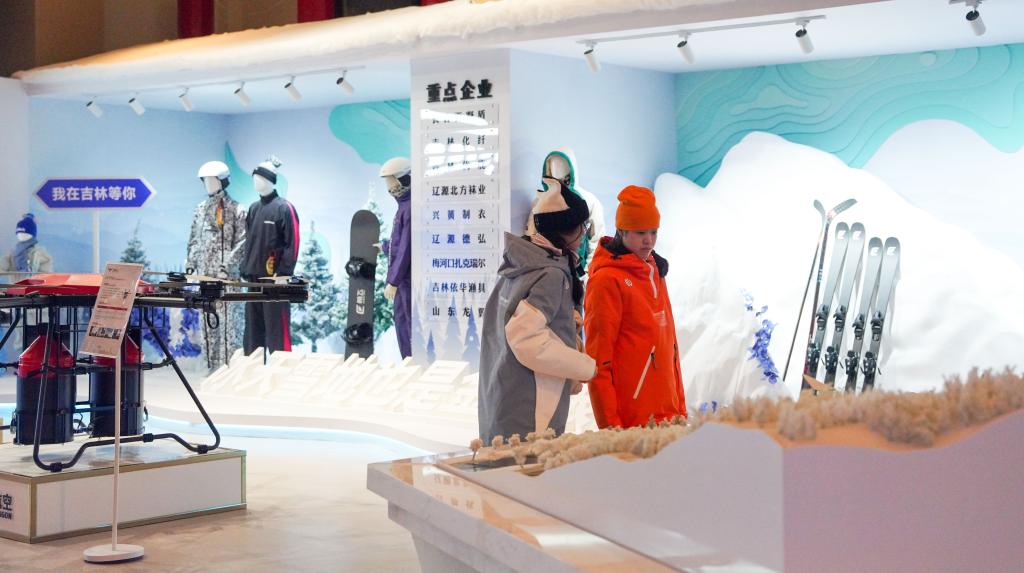 2024年12月19日,游客在吉林市北大湖滑雪度假區(qū)內(nèi)的冰雪裝備展區(qū)參觀。新華社記者顏麟蘊(yùn) 攝