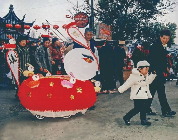 上世紀90年代孩子拉著兔子花燈歡快奔走 圖源:南京秦淮區文化館