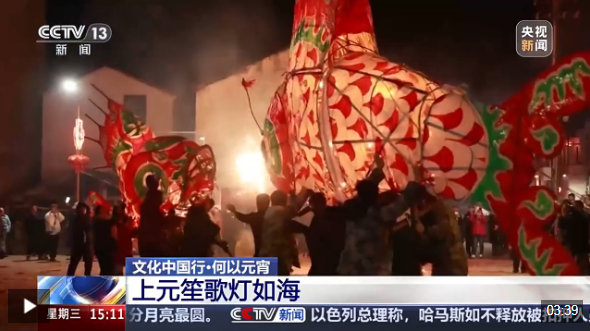 中國社會(huì)科學(xué)院民族文學(xué)研究所研究員、北京民間文藝家協(xié)會(huì)副主席 毛巧暉:相傳在漢代我們就有過元宵節(jié)的習(xí)俗,但當(dāng)時(shí)是叫“正月十五”或者叫“正月望”。這個(gè)燈,可能和中國上古對火的崇拜有很大的關(guān)系,后來也跟傳入的佛教文化結(jié)合,逐步形成了觀燈賞燈的習(xí)俗。燈又和中國的“丁”是諧音,寓意吉祥,添丁進(jìn)口,人丁興旺。
