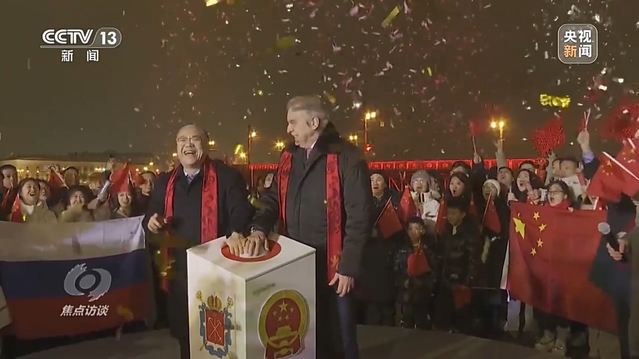 在俄羅斯第二大城市圣彼得堡,橫跨涅瓦河的冬宮橋在《春節序曲》的悠揚旋律中徐徐開啟。橋身燈光閃亮的“中國紅”映照在河面上,給寒冷的冬夜帶來濃濃暖意和喜慶氣息,這是圣彼得堡首次為外國節日開橋。