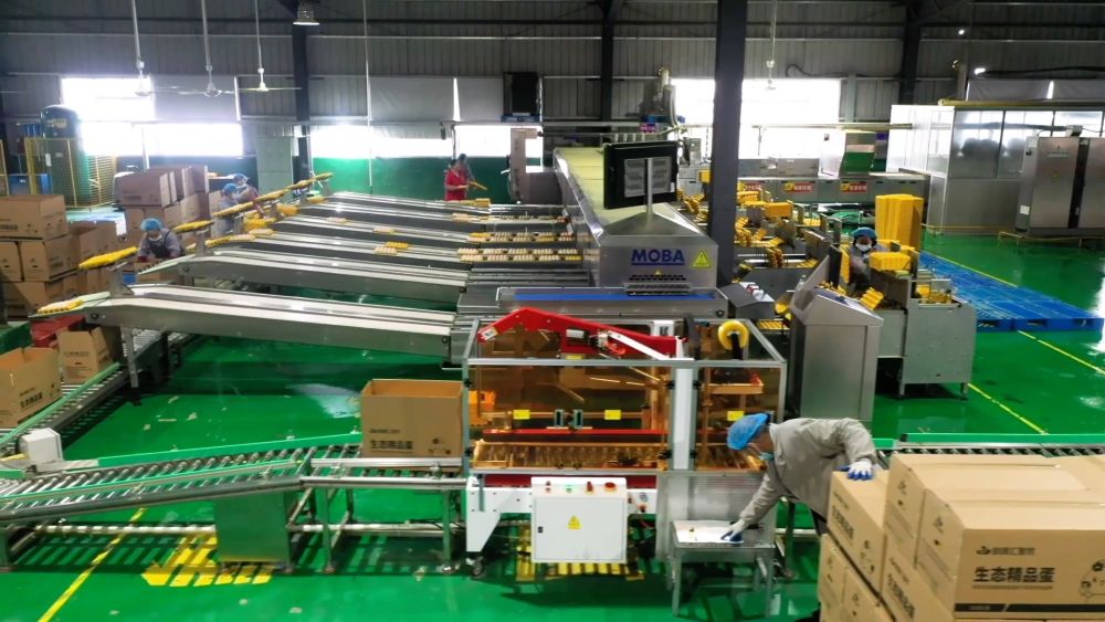 在湖北建始的一處養殖基地內,一枚枚當天產的新鮮雞蛋通過流水線不斷傳輸。經過分揀、殺菌、打包、裝箱的雞蛋將被發往江蘇、浙江等地。