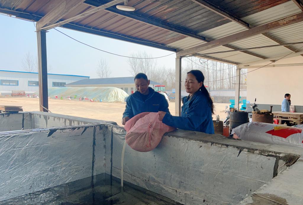 3月6日一大早,安徽省合肥市廬江縣農技推廣中心主任吳晨陽來到種糧大戶田素平的合作社,指導早稻育秧工作。只見田素平打開包裝袋,將一袋袋稻種倒入浸種池中。