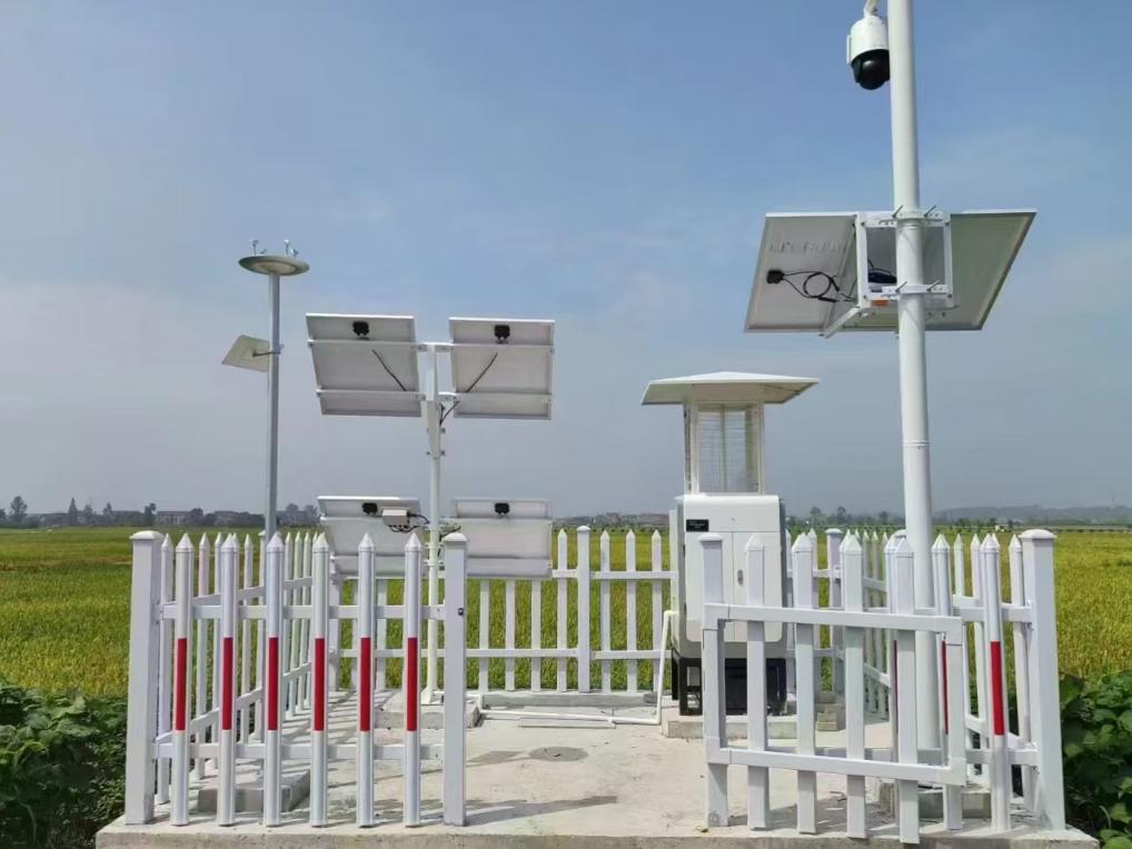 常德市桃源縣金鳳橋村智慧農田里的氣象觀測站和智能蟲情測報站。(受訪者供圖)