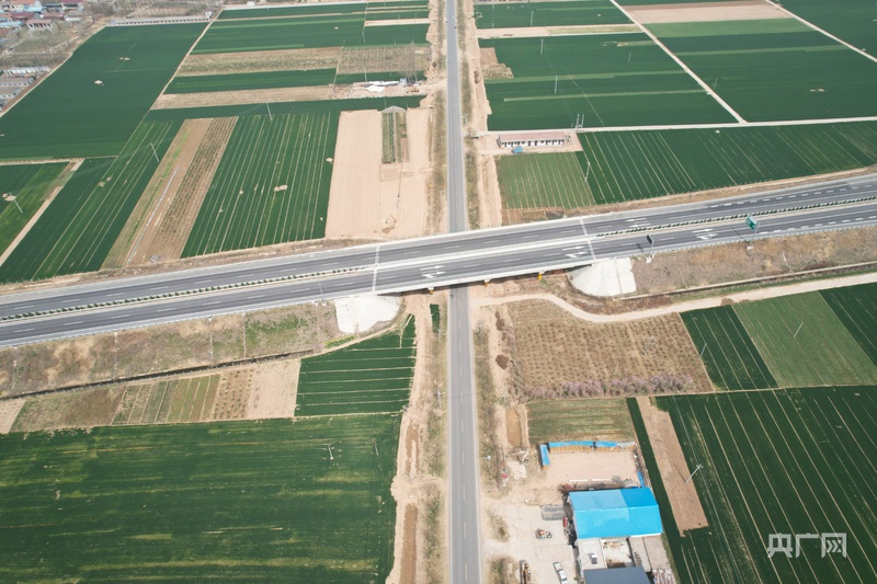 從空中俯瞰,蘭原高速(橫向)與魯陳路(縱向)成十字形(央廣網發 趙夢陽 攝)