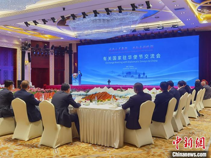 3月31日,新疆在北京舉辦有關國家駐華使節交流會,來自43個國家和國際組織的70位外賓出席。 中新社記者 徐雪瑩 攝