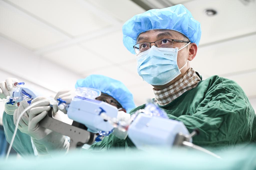 2月20日,在南京市第一醫院,張俊杰和團隊在心導管室為患者進行經導管二尖瓣緣對緣修復手術。(新華社記者 季春鵬 攝)