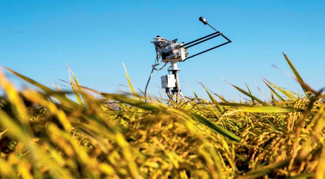 黑龍江省富錦市萬畝水稻科技示范園內(nèi)的氣象監(jiān)測(cè)設(shè)備(2022年9月2日攝) 張濤攝 / 本刊