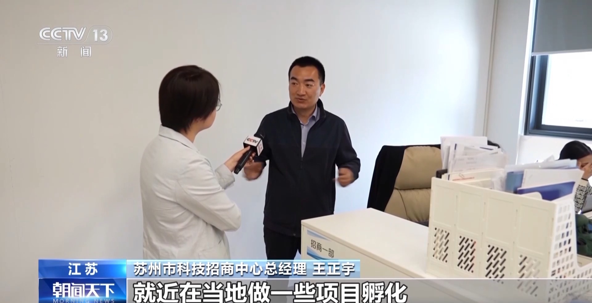 蘇州市科技招商中心總經理 王正宇:方便這些高校的老師跟研究生,就近在當地做一些項目的孵化。我們匹配一些載體、政策,包括資金的支持,條件成熟的時候,我們再讓他到蘇州來落地發展。