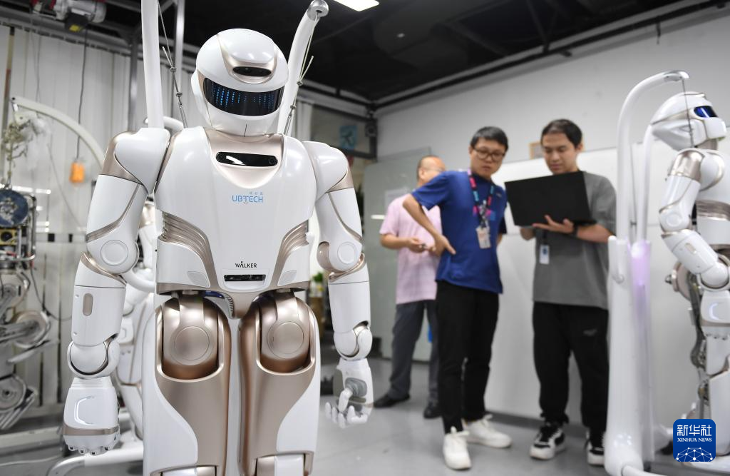 2024年6月26日,在位于深圳市南山智園的優必選總部,工作人員對人形機器人進行測試。新華社記者毛思倩 攝