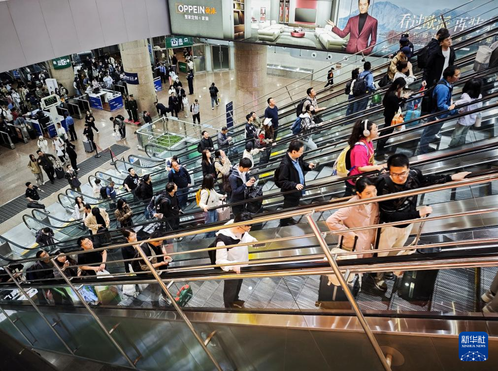 4月30日,旅客在南京火車站乘車出行。新華社發(蘇陽 攝)