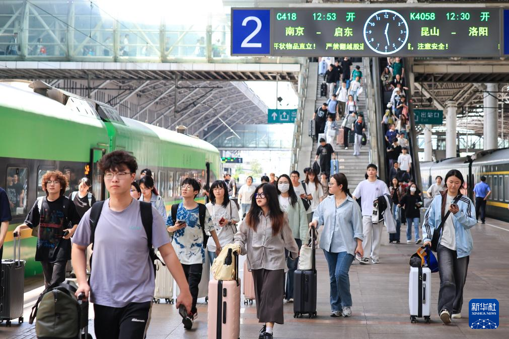 4月30日,旅客在南京火車站下車出站。新華社發(蘇陽 攝)