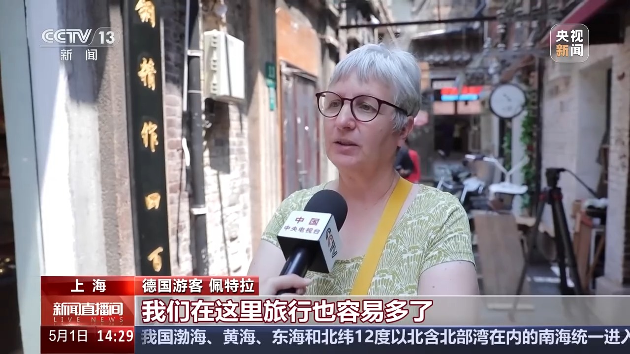 德國游客 佩特拉:我們是想來這購物的,我們購買了絲巾和其他旅游紀(jì)念品。我們9年前來過中國,我看到了這9年發(fā)生的變化,現(xiàn)在來不用簽證了,我們在這里旅行也容易多了。