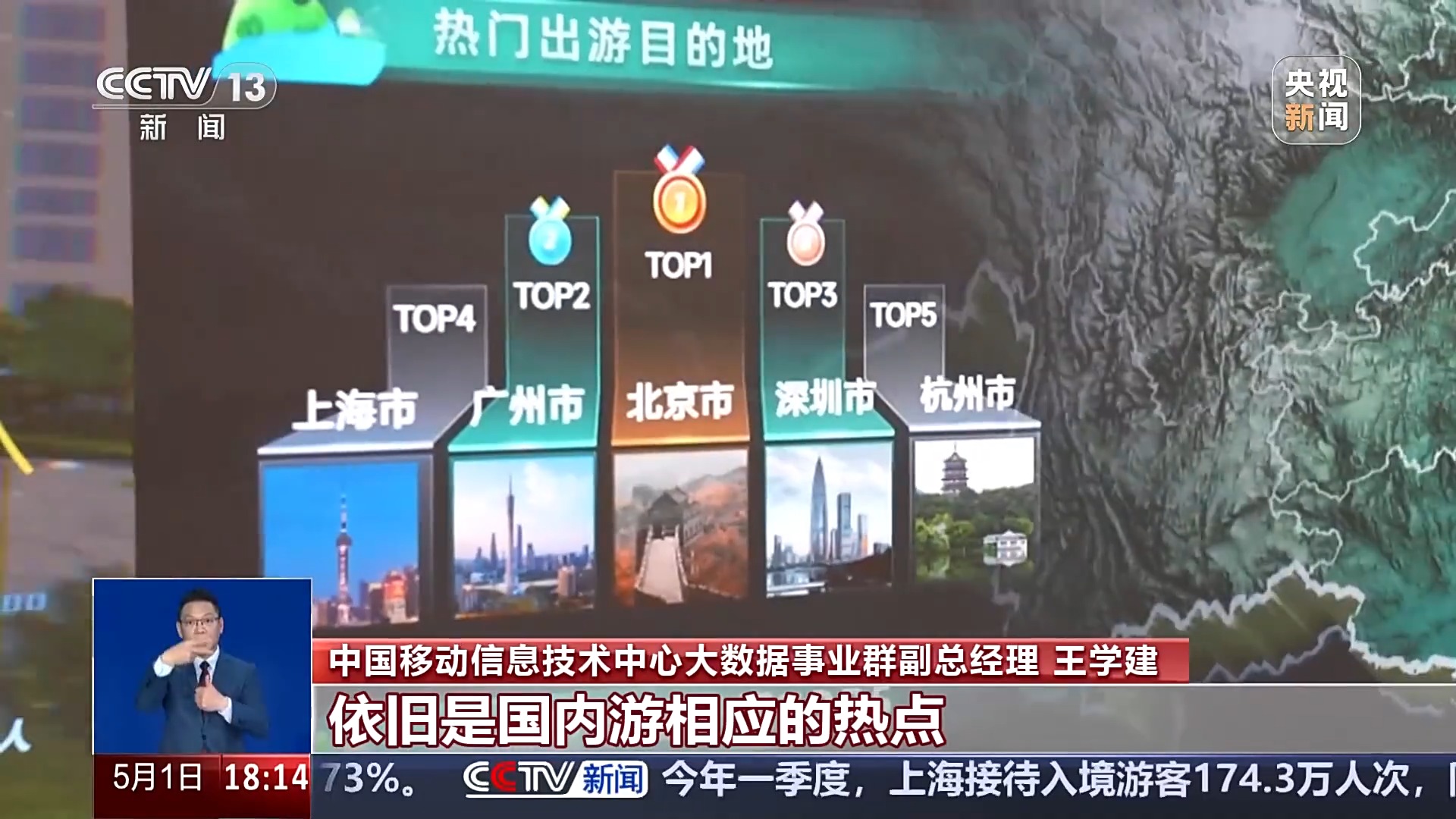 中國移動信息技術中心大數據事業群副總經理 王學建:今年“五一”黃金周,在國內游這方面,我們也發現一、二線城市依舊是國內游相應的熱點,吸引了來自整個出游人群的59%。鄉村游的熱度也是越來越高,預計今年的鄉村游整個人流較去年同期會增長12%。