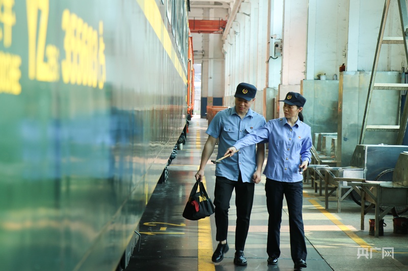 吳園梅和徒弟正在檢修車(chē)輛(央廣網(wǎng)記者 劉培俊 攝)