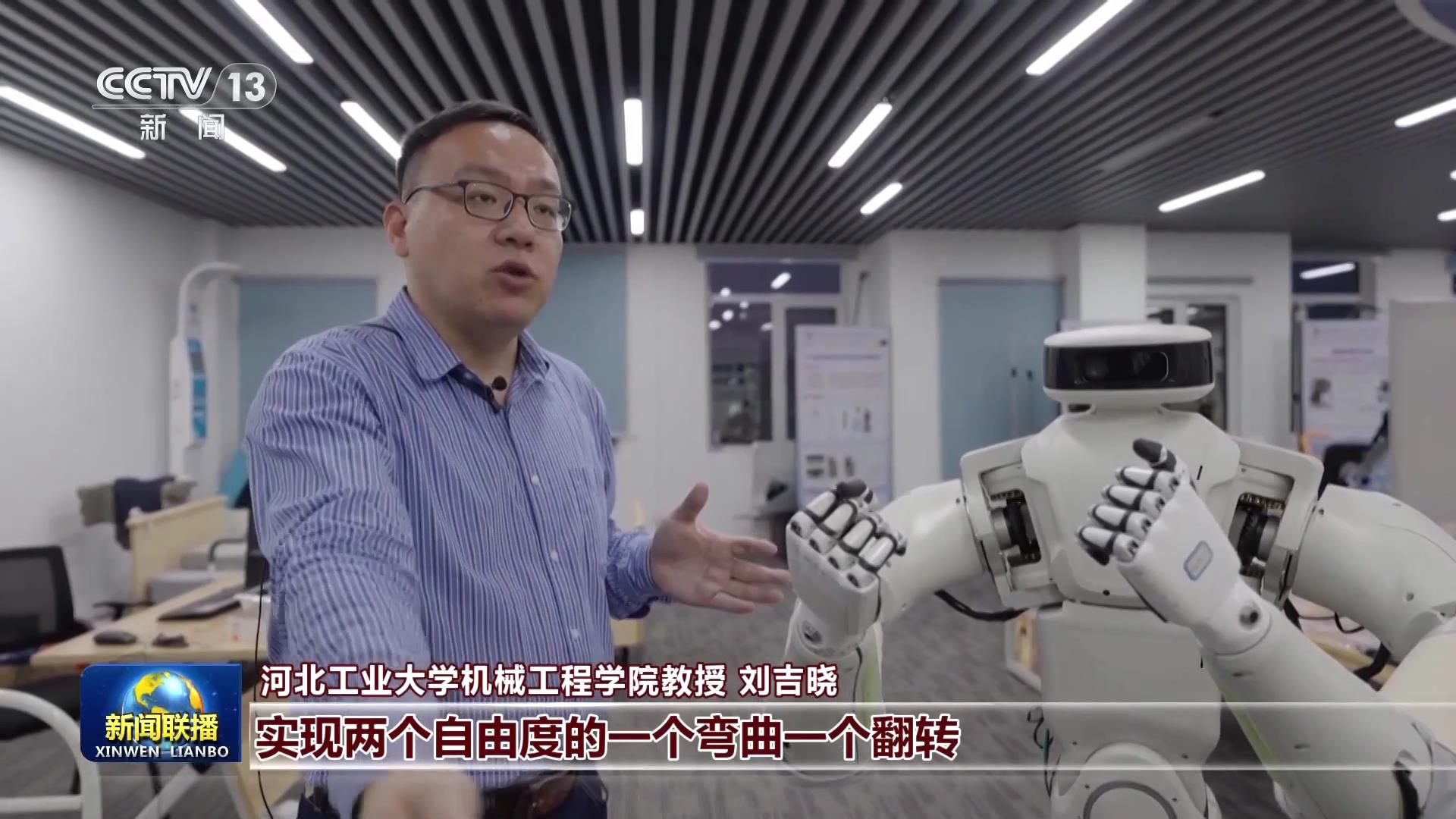 在河北工業大學,這款養老機器人經過多年研發已經可以在工程師的協作下伸出超長雙臂,穩穩地將學生從床上抱起,并將她移位到輪椅上。