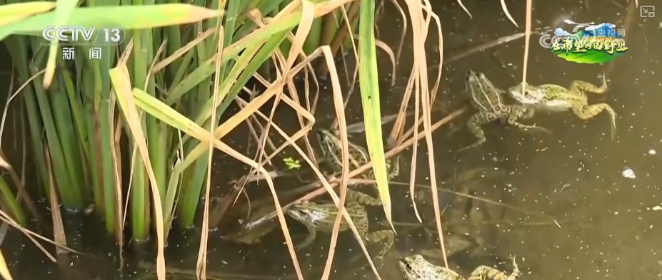 小鴨子們喜歡吃稻谷,它們會不會把稻田里的谷子也吃掉?為了防止這樣的情況發生,這里采用的模式是“鴨蛙稻”模式,5月放鴨、7月放蛙,在水稻進入抽穗期,也就是有稻谷的時候,15萬只小青蛙就會來接力管理這片農田,由它們來捕食害蟲,替代殺蟲劑。